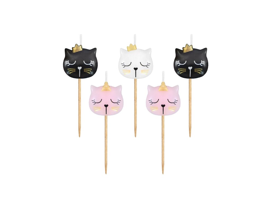 Sada pěti kusů dortových svíček ve tvaru kočičích hlaviček, balení 5ks, výška 3cm.