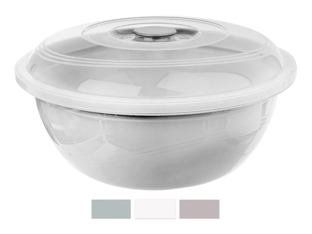Plastová mísa s víkem, která je ideální pro servírování a přípravu ochuceného popcornu, objem 6 litrů, mix barev.