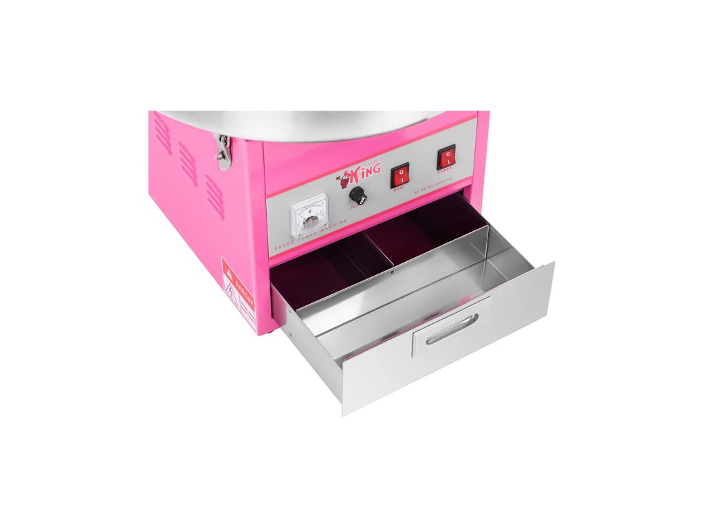 Charakteristika přístroje výrobcem: Určeno na různé akce pro děti pořádané v restauracích nebo v domácích podmínkách. Nerezová mísa, vhodná do myčky na nádobí. Uchycení mísy ke krytu motoru pomocí 4 svorek. Růžový kryt motoru z lakovaného oceli přitahuje pozornost nejmladších zákazníků. Samostatný vypínač napájení a ohřívání s integrovanými kontrolkami. Voltmetr ukazující aktuální napětí. Pojistka proti přetížení, která chrání motor před spálením v případě zablokování.