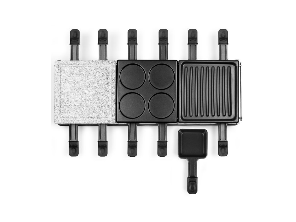 - Ideální pro přípravu raclette sýrů, grilovaného masa, zeleniny, fondue ze sýra nebo čokolády i mini palačinek