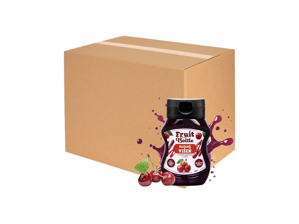 Lahodná ovocná pomazánka Mazaná višeň, která je ideální volbou pro všechny milovníky sladkých dobrot, bez umělých sladidel, příchuť višeň, balení 12x280g v praktické lahvi.